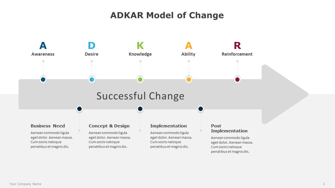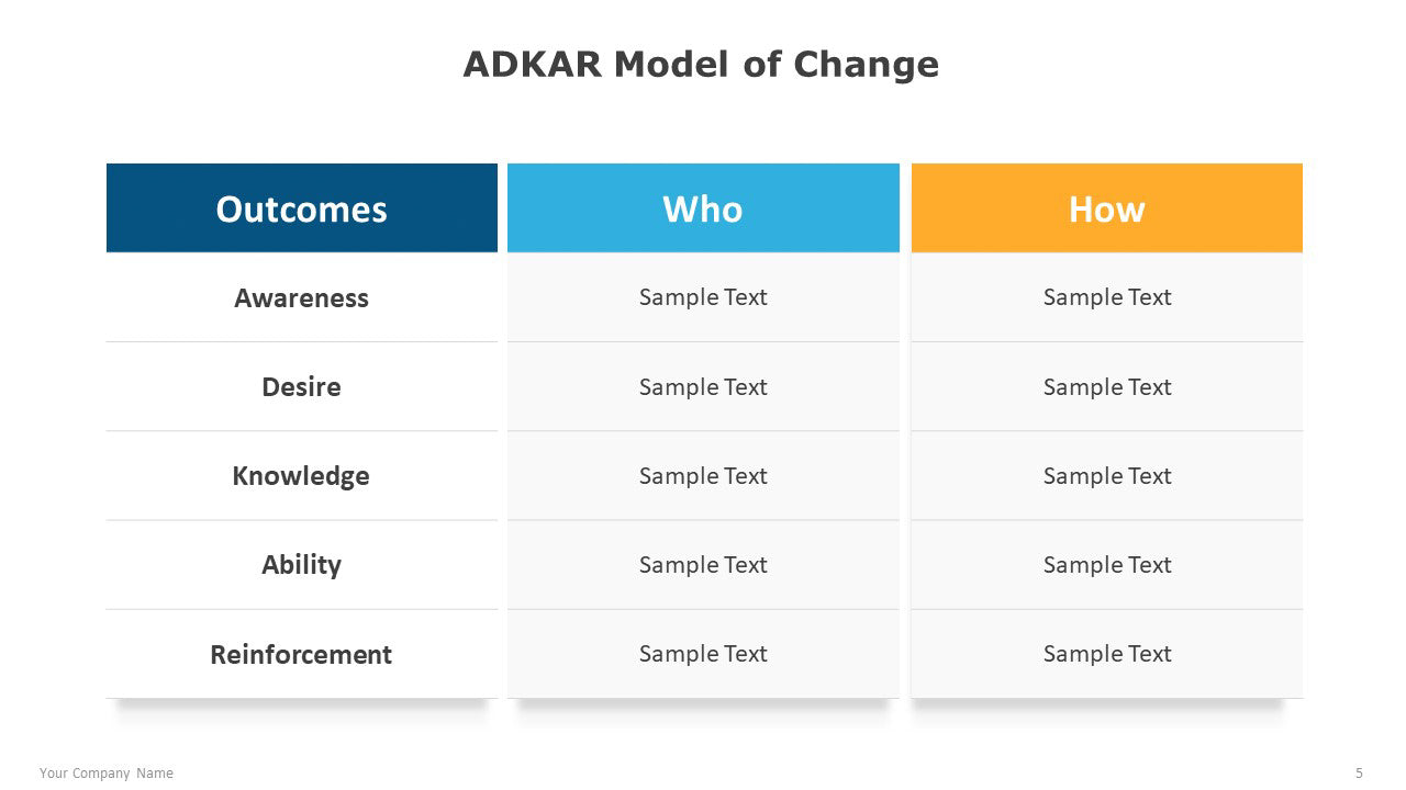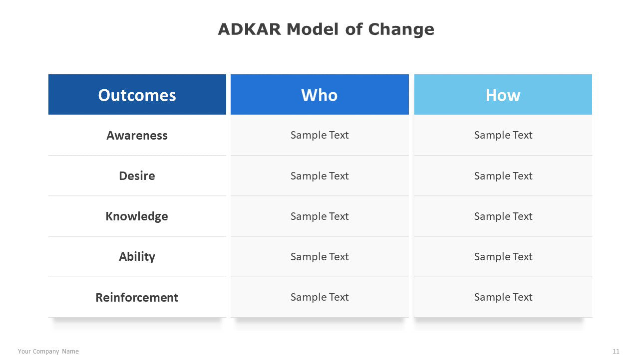 The ADKAR Model of Change for PowerPoint can be used to plan and visualize potential changes within an organization.